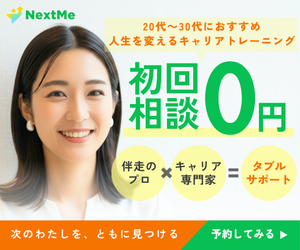 | NextMe(ネクストミー) | 約30〜90万円台* | 専属トレーナー+リードトレーナーの ダブル伴走 で対話中心のキャリア設計。中長期設計重視。 | 自分の価値観・方向性を深く整理したい人 |
